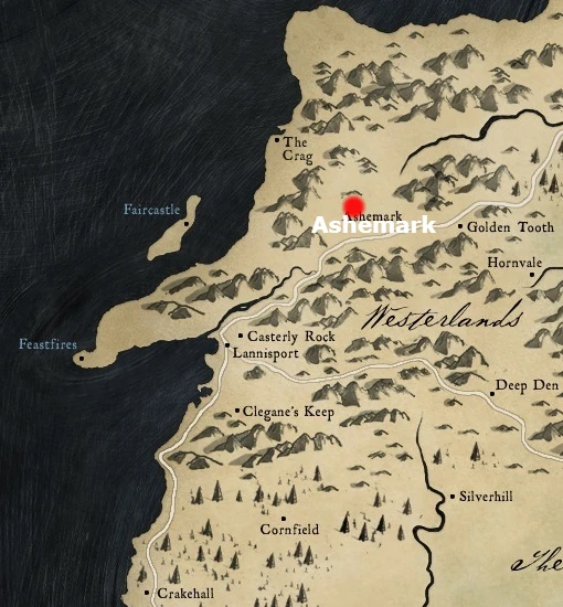 Ashemark è il seggio della Casa Marbrand nelle Terre dell'Ovest. È situato in un'area collinare, a sudest del Crag, a nordovest della Zanna Dorata e nord di Sarsfield.