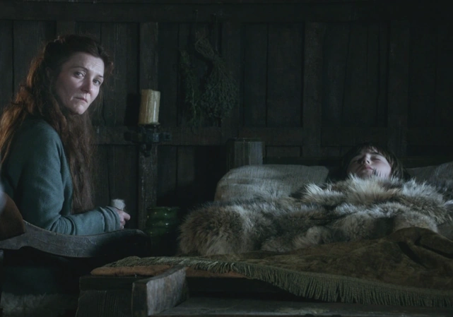 Una notte scoppia un incendio che fa momentaneamente allontanare Robb e alcuni soldati dagli appartamenti degli Stark. Questo è un diversivo creato da un assassino che entra nella stanza per uccidere Bran, ancora in coma. Catelyn, rimasta da sola nella stanza, cerca di fermarlo lottando con lui per proteggere il figlio. Bran e Catelyn vengono salvati da Estate, metalupo di Bran, che uccide l'assassino. Catelyn mostra a Robb e gli altri la daga in acciaio di Valyria usata dall'assassino e decide di recarsi ad Approdo del Re per avvertire Ned dell'accaduto. Scortata da ser Rodrik Cassel, Catelyn Stark parte per la capitale.