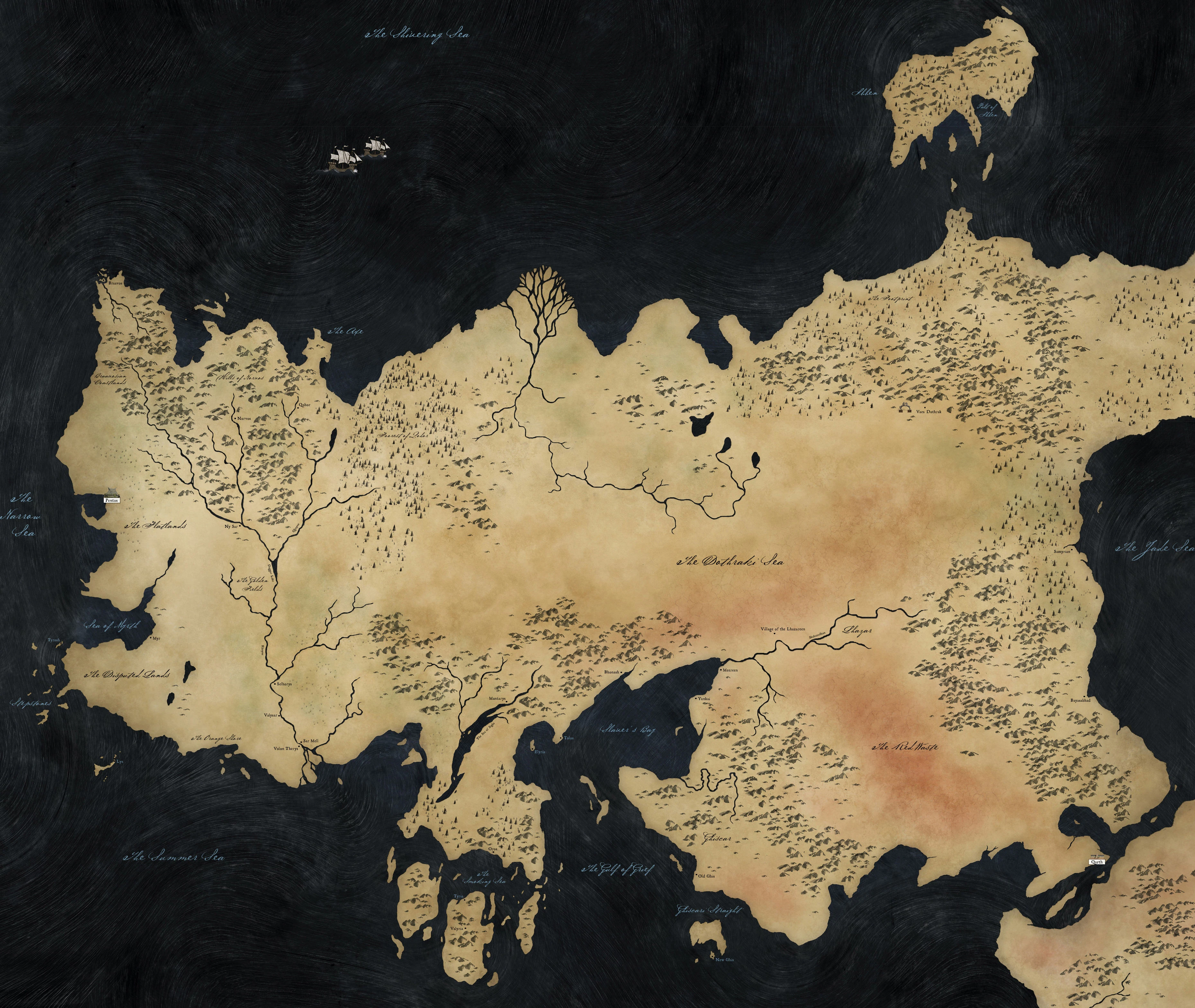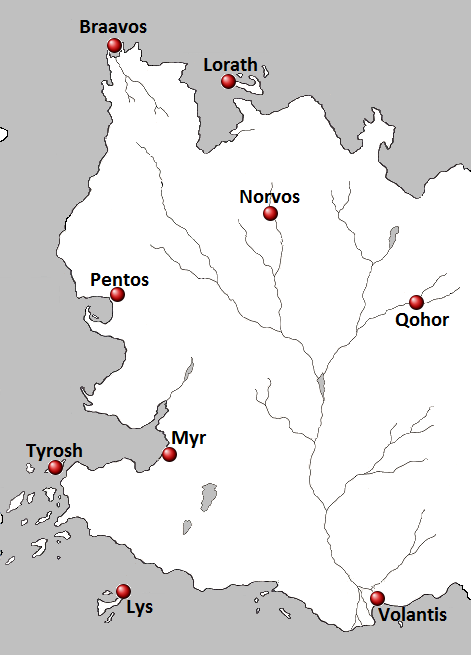 - Lys, situata su un'isola al largo della costa meridionale, a sud-est di Tyrosh e ovest di Volantis