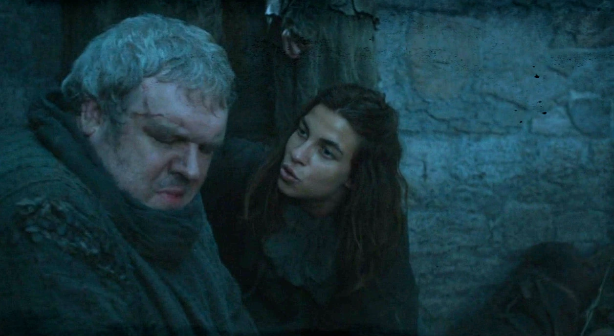 Osha cerca di calmare Hodor spaventato dal temporale.