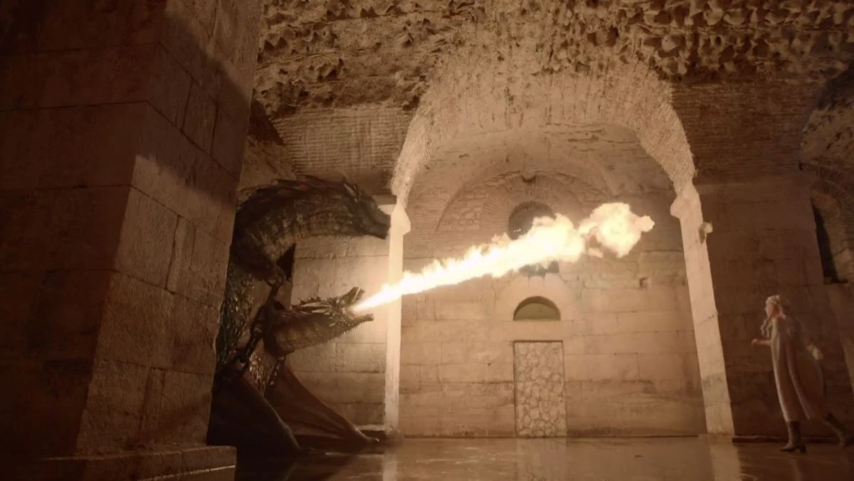 Un giorno Daenerys si reca nelle catacombe per controllare lo stato dei suoi draghi. Rhaegal e Viserion, che sono cresciuti durante il loro periodo di cattività, iniziano a sputare fuoco e allora Daenerys fugge via.